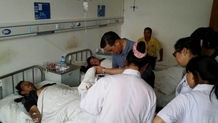 云南省中醫醫院院長秦國政在魯甸縣中醫院查看受傷人員