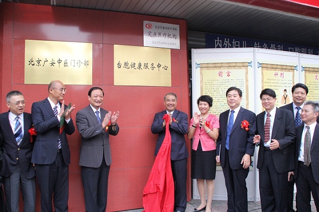 2014年8月28日,經國務院臺辦和國家中醫藥管理局批準,國家中醫藥管理局對臺港澳中醫藥交流合作中心所屬的北京廣安中醫門診部內設“臺胞健康服務北京中心”正式成立。這是北京首家專為臺胞就醫開設的中醫藥特色服務綠色通道,力求為在京臺胞解決就醫困難,方便臺胞,服務臺胞。 國家衛生計生委副主任、國家中醫藥管理局局長王國強、國臺辦交流局副局長王冰、國民黨中常委兩岸醫療事務召集人廖國棟等臺灣友人及北京臺資企業協會負責人等出席了成立儀式。王國強指出,解決臺胞在大陸就醫遇到的問題,使臺胞在大陸也能夠享受優質醫療服務尤其是中醫藥特色服務,已經成為兩岸共同關心和關注的話題。希望“臺胞健康服務北京中心”辦出特色,探索模式,做好引領,期待未來在江蘇、浙江、山東等臺胞聚集地能夠建立更多的臺胞中醫藥健康服務中心連鎖機構,方便更多臺胞就近就醫,享受中醫藥特色服務。 國民黨中央委員會兩岸醫療事務召集人、臺灣中華兩岸醫療健康發展協會理事長廖國棟先生表示,通過“臺胞健康服務北京中心”這個平臺,能為廣大的臺胞朋友提供優質的中醫醫療服務,推動兩岸醫療保險制度的對接,意義重大,是為在京的臺灣民眾做的一件好事、實事。 “臺胞健康服務北京中心”落戶北京廣安中醫門診部,將有利于為在京工作生活的臺胞及所有前來北京探親訪友、旅游就醫、經商求學的臺灣同胞提供健康咨詢、醫療預約和就醫陪同等全程服務,同時,還將定期為臺胞舉辦健康講座和義診活動,逐漸成為臺胞在京醫療定點服務的醫院,搭建在京臺胞醫師就業和臺資醫療機構服務平臺,真正為臺灣同胞謀福祉。