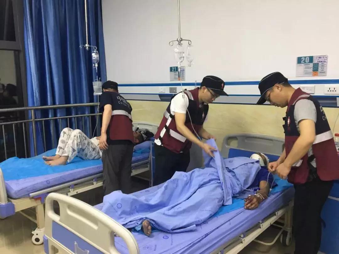 03:53 ,救援隊到達長寧縣中醫院,救援人員到病房查看了解傷員情況。