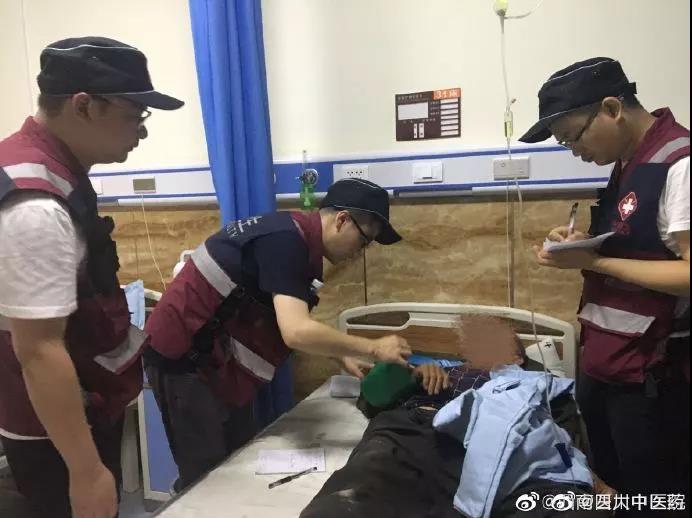 05:30到達宜賓市第二人民醫院長寧安寧分院,消毒、清創、包扎、小夾板等,為14名傷員進行了診治。