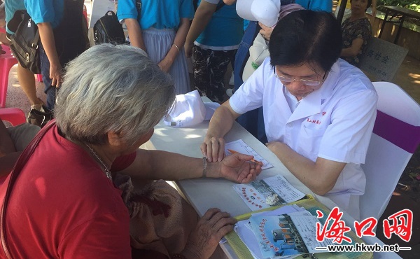 8時30分許,海口金牛嶺公園廣場上人流匯聚。養(yǎng)生健身操、陳式太極拳、木蘭劍等養(yǎng)生保健節(jié)目的精彩表演吸人眼球,提前預熱了活動氣氛。來自省中醫(yī)藥、海醫(yī)中醫(yī)學院、海口市中醫(yī)院等多家醫(yī)院的10位中醫(yī)師組成義診團隊,現(xiàn)場為239名市民免費提供把脈、測血壓等義診服務,對市民關注的心血管系統(tǒng)疾病、消化系統(tǒng)疾病、骨關節(jié)疾病、風濕類疾病等病種,從中醫(yī)學的防治上進行了詳細地健康宣教。