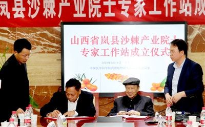10月8日,山西省嵐縣與中國醫(yī)學科學院藥用植物研究所肖培根院士團隊共建的“嵐縣沙棘產(chǎn)業(yè)院士專家工作站”成立儀式在北京舉行。嵐縣縣委副書記、縣長喬云向以肖培根院士為首的工作站專家頒發(fā)了聘書。喬云在成立儀式上說,要繼續(xù)堅守“綠水青山就是金山銀山”的理念,以科技為支撐,培育好“小沙棘”,做強“大產(chǎn)業(yè)”。