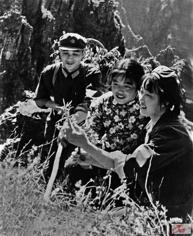 下鄉(xiāng)知識(shí)青年,赤腳醫(yī)生在采摘中草藥 1970
