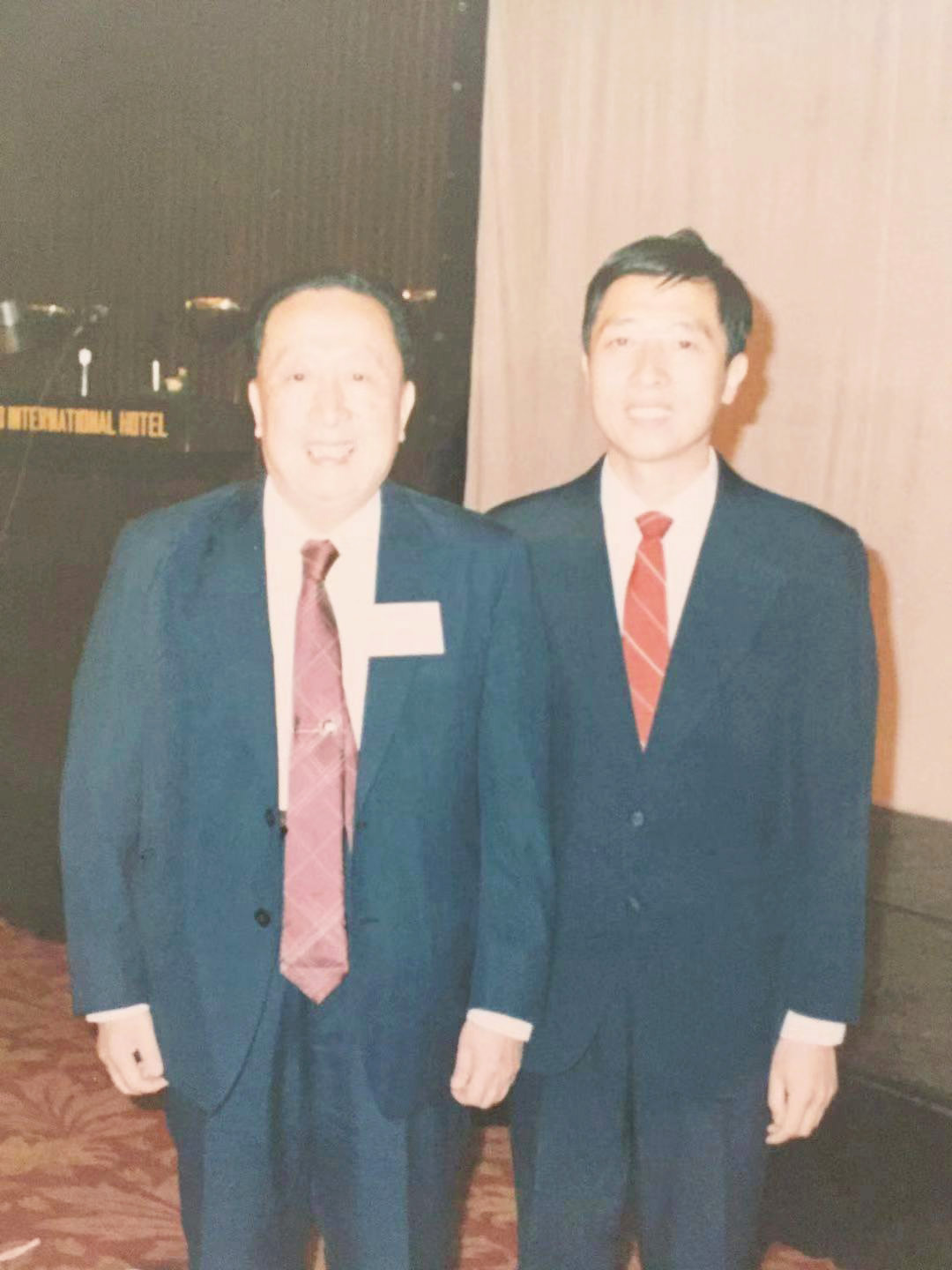 1991年,劉家放(右)和吳階平(左)在北京第二屆國際泌尿外科會會場。