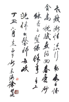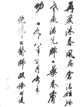 1998年,徐邦達再次來南京舉辦個人畫展,又因飲食過量,一時脘腹不適,臥床不起,復請單兆偉診治。單兆偉處方太子參、炒白術、焦楂曲、炒谷麥芽等藥消食和胃健脾,又是一劑藥后病即告愈。徐邦達嘆其醫術,并感慨中醫療效之確切,欣喜萬分,再次揮毫:“再度沐春風,扁倉洽始終,治病先治脾,一劑湊膚功。”