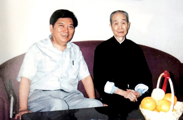 我的老師、中醫脾胃病專家單兆偉教授出生于江蘇省南通市,為江蘇省中醫院主任醫師,師從孟河醫派名醫張澤生,在繼承前賢基礎上,弘揚發揮其診療用藥特色,并不斷創新和發展。在一次跟師診療之余,師生們一起翻看單老師的影集,老師和一位雍容淡雅的老者的合影映入眼簾,細問才知這位老者正是書畫藝術泰斗徐邦達。我也由此得知一段20多年前書畫大師與老中醫的佳話。
